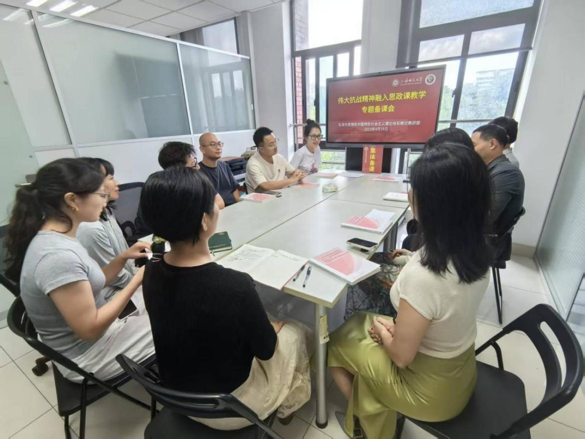 为深入贯彻习近平总书记关于弘扬伟大抗战精神的重要论述,切实推进思政课程内涵建设,9月19日下午,学院各系部围绕“伟大抗战精神融入思政课教学”举行了2025年秋季学期第一次集体备课会。