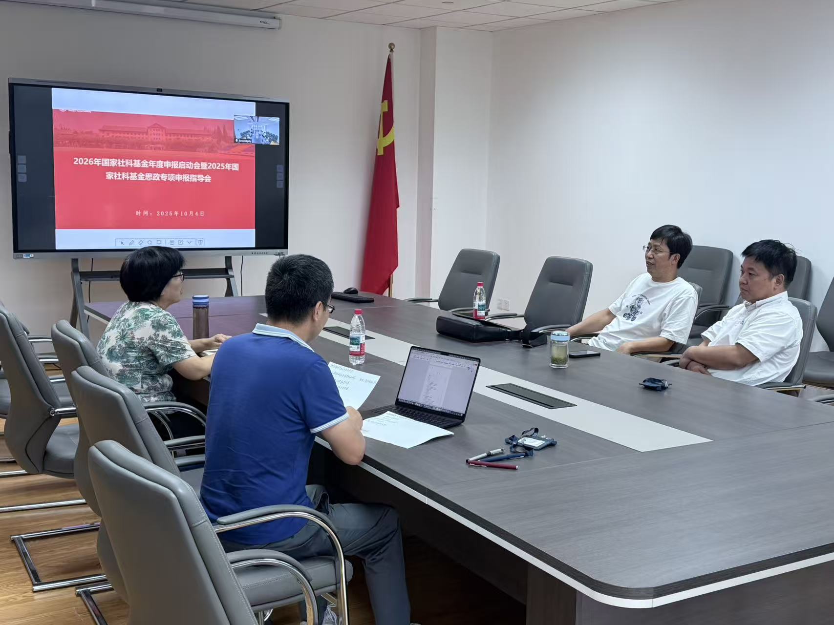 为扎实推进国家社科基金项目申报工作,切实提升申报质量与立项率,2025年10月4日下午,太阳集团官网8722在徐汇校区文科实验楼410会议室隆重举办了“2026年国家社科基金年度项目申报启动会暨2025年国家社科基金思政专项申报指导会”。会议特邀河海大学太阳集团官网8722二级教授、博士生导师黄明理担任主讲嘉宾。学院院长张志丹教授、副院长贾淑品教授、徐剑雄教授出席会议,学院拟申报课题的教师通过线上、线下相结合的方式参加了本次会议。会议由副院长贾淑品主持。