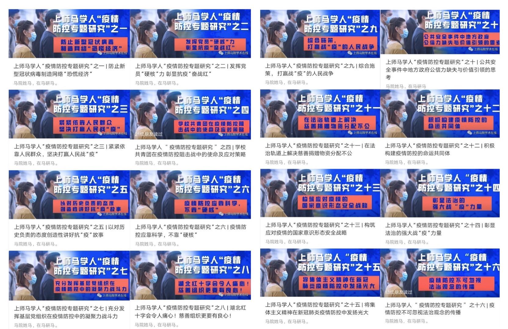目前我国重中之重的任务是有效防治新型冠状病毒引发的肺炎疫情,这是党和国家的一项重大政治任务。为更好地配合这项重大政治任务的完成,马院首创“快速响应、党建引领、聚焦主题、集中攻关”的思路,聚焦突发公共事件,践行学术精神、履行学者责任,第一时间组建抗“疫”微信群,开展科学研究,并已在《光明日报》、《文汇报》、《解放日报》等主流报纸和人民网、党建网等推出系列硕果。